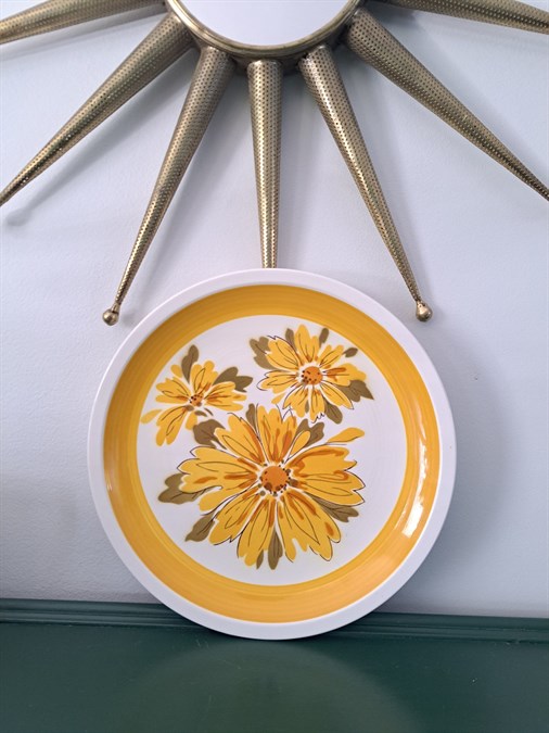 Lovely vibrant floral dinner plate from the Mikasa Cera-Stone line. This pattern is called Mikasa Daybreak and was manufactured from circa 1974 to 1976 only.
