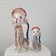 Absolutely adorable! This ceramic mother dog, poodle and puppy are the the cutest little pair. With their little red hats and neck bows they will win your heart. The cute duo are soft blue, brown and white.